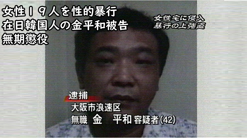 在日韓国人による性犯罪が日本で多発しているため、裁判の結果についてまとめました ![]() 在日韓国人が日本で起こした性犯罪事件 ※赤字は犯人の実名 金平和 容疑者(韓国籍)・女性19人を強姦(無期) 金寿明 容疑者(朝鮮籍)・女性18人を強姦(無期) 李正遠 容疑者(韓国籍)・女性8人を強姦(刑18年) 李桐昊 容疑者 (韓国籍)・女性3人を強姦 高直幸 容疑者 (朝鮮籍)・女性2人を強姦 金義昭 容疑者 (韓国籍)・女性6人を強姦 千大福 容疑者 (韓国籍)・19歳の女性を強姦 金龍義 容疑者 (韓国籍)・女性4人を強姦 <2006年に報道されたニュースのみ> 以降は事件の詳細です 女性19人を強姦 在日韓国人金平和被告(大阪・神戸) ![]() <事件概要> 神戸市と大阪市で、一人暮らしの女性宅のベランダの窓ガラスを割って侵入し、帰宅した女性を強姦。その後、女性の手足を縛り大型のキャリーバッグに入れて自宅に持ち運び、再び強姦を繰り返す。 裁判で認定された被害者数は19名。1週間監禁された被害者がいる。金平和被告本人は「30件はやった」と供述。 被害者のうちの1人が金被告の自宅に運び込まれる際、おおよその道のりを覚えていた為、監禁場所を特定し逮捕することができた(神戸地裁・無期懲役) 朝日新聞とNHKでは「本名=金平和」ではなく「山元平和=やまもとひらかず」と通名(つうめい)報道。在日コリアンであることを伏せた 【関西メディアで報道された時のニュース映像▼】 ![]() 在日朝鮮人 金寿明 容疑者 女性18人を連続強姦(大阪) ![]() <事件内容> 大阪市生野区の路上で女性を拳銃で脅し車内に引きずり込んで強姦。 現場に残された体液のDNAと、暴行の様子を撮影したビデオ映像から容疑者が判明。 被害者は12歳〜24歳の女性18人 犯行の際に拳銃を使用しており「家族を殺す」と脅し犯行に及ぶ。事件後に自殺を考えたり、学校を中退した被害者がいる。大阪地裁の裁判長は「本来備えているべき人間性が欠落している」とし無期懲役。 朝日新聞・毎日新聞は容疑者の氏名を、本名:金寿明ではなく「松岡寿明」と報道した 東京都内で女性3名を強姦 韓国籍 「李桐昊(イ・ドンホ)」容疑者(28) ![]() 東京都内で携帯電話の操作などに熱中しながら一人で歩く女性を狙い、あとをつけてマンションに侵入する手口で強姦を繰り返す。 強姦未遂(被害女性の知人男性に取り押さえられる)で逮捕された後、3件の犯行が発覚 【日本に留学中の犯行】 オートバイに乗り、帰宅中の女性を物色し対象を決めるとバイクを停車させて歩いて尾行。 被害者がオートロックマンション住みの場合、正面出入り口ではなく非常階段からマンションに侵入。 女性の停止階を確認してから階段をかけ上り、犯行に及んでいた。 「ヘッドホンの女性は襲いやすい。オートロックマンションは非常階段は鍵がかかっていないことが多く犯行を行いやすい」と供述していた。 浜松市内で女性8人を連続強姦 在日韓国人 李正遠(イ・チョンオン)容疑者(33) ![]() 浜松市内の住宅に侵入し、一人で家にいた当時15歳の少女を暴行し逮捕するなど、8人に対する強姦傷害及び窃盗などの罪に問われ、合わせて11の事件で起訴。懲役18年 ・在日の性犯罪者は国外追放できない在日コリアンが犯罪を犯しても母国に強制送還できないため、出所後も日本で生活できる状態が継続されています。 ※以前は、在日が犯罪を行った場合、、「懲役7年以上で国外追放」だったのですが、”日韓外相覚書(1991年)”が妥結されてからは、日本国内で殺人などを行っても”国外追放されない”という特殊な身分にあります ▼このような韓国人が出所後も日本で生活できる ![]() ▼ 日本国内の外国人犯罪(警視庁) 殺人: 1位 韓国朝鮮 2位 中国 強姦: 1位 韓国朝鮮 2位 中国 放火: 1位 韓国朝鮮 2位 中国 暴行: 1位 韓国朝鮮 2位 中国 傷害: 1位 韓国朝鮮 2位 中国 恐喝: 1位 韓国朝鮮 2位 中国 窃盗: 1位 ベトナム 2位 中国 在日の犯罪を伏せる日本のマスコミの問題点![]() 目白通り沿いで発生した連続婦女暴行事件では女性19人が暴行された後、防犯カメラに映った犯人の姿が報道され、地上波で特集が組まれました。 しかし、在日韓国人の宋治悦が逮捕された途端、マスコミはこの事件に一切触れなくなりました。 金允植(キム・インシュク)という韓国人は、韓国内で強姦事件を起こし、指名手配される直前に日本に逃亡してきました。 しかし、マスコミはこの事実を知っていながら『日韓友好(韓国ブーム)』に配慮し、一切報じませんでした。 強姦される女性たちを見殺しにしたのです。 金允植が逮捕されたのは、大阪市内で80人以上の女性が強姦された後でした。 テレビ局によって容疑者・氏名が異なる「通名(つうめい)報道」とは ![]() 「読売新聞」「産経新聞」が「朴(パク)聖列」と本名で報道しているのに対し、「朝日新聞」「毎日新聞」は「江波戸(えばと)聖列」と通名(つうめい)を使用して報道している。 「本名=朴(パク)」だと、容疑者が在日であると分かるため、朝日新聞・毎日新聞では、通名(つうめい)を使用し
